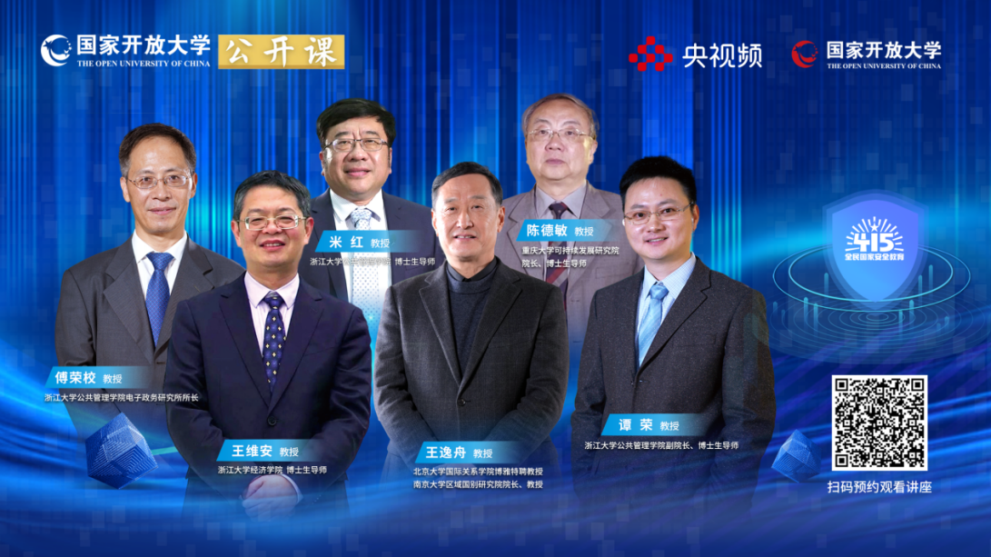 今年的公开课将聚焦非传统安全主题,邀请北京大学国际关系学院教授王逸舟,重庆大学可持续发展研究院院长陈德敏,浙江大学经济学院教授王维安,浙江大学公共管理学院教授米红、谭荣、傅荣校,从国际关系、生态环境安全、金融安全、人口安全、土地安全、信息安全等方面,带领社会公众从更全局的角度去认识、理解总体国家安全观,增强全民国家安全意识和素养,夯实以新安全格局保障新发展格局的社会基础。