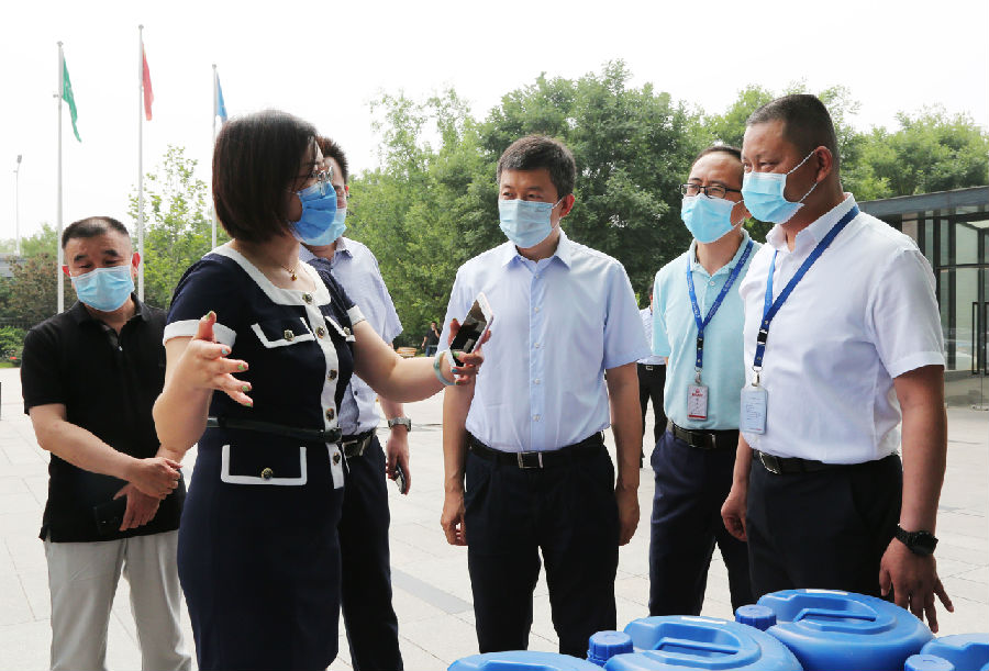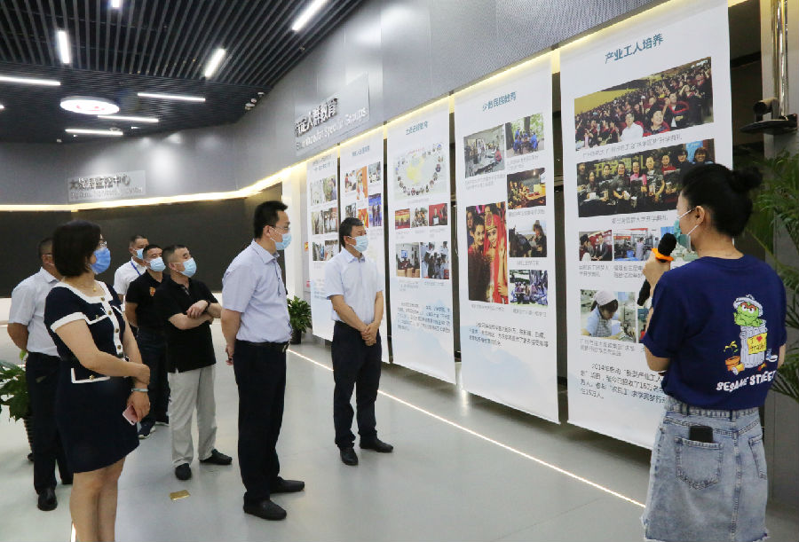《祖国》杂志社法治专题部金晓玲讲解了次氯酸消毒液的使用方式和功效。《祖国》杂志社一行人参观了“互联网+大学”展示中心。(摄影:诸葛寰宇)