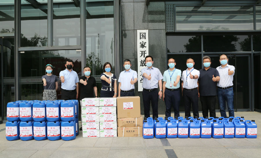 6月11日,《祖国》杂志社组织广东李澳生物科技有限公司、壹米(广东)医疗用品有限公司等爱心企业向球王会官网捐赠次氯酸消毒液、医用口罩、医用手套等防疫物资,助力学校防疫抗疫工作。球王会官网党委书记、校长荆德刚,副校长亓彦伟及相关部门负责人,《祖国》杂志社法治专题部主任耿兴徐及相关人员参加捐赠仪式。