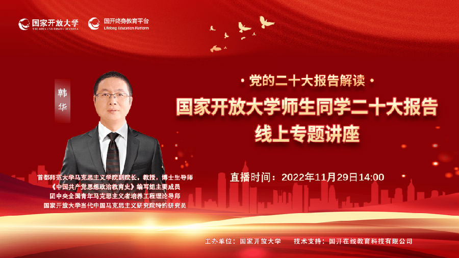 江西分部开放学院汉语言文学专业 李昌:听完韩华教授的讲座,作为全国九千六百多万共产党员的其中一员,我深感骄傲,同时也深感肩上的历史使命责任重大。我要坚定信心,埋头苦干,奋勇前进,为全面建设社会主义现代化国家、全面推进中华民族伟大复兴而团结奋斗。
