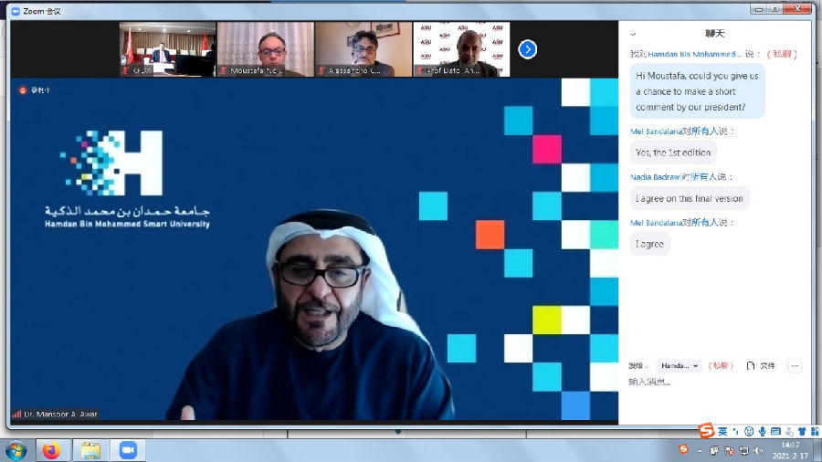 2021年2月17日,由阿拉伯联合酋长国哈姆丹·本·穆罕默德智慧大学主办的“在线、开放、智慧和技术增强型高等教育基准框架和数据集联盟”(以下简称“基准框架联盟”)领导人会议在线举行。球王会官网党委书记、校长荆德刚出席会议并发言。