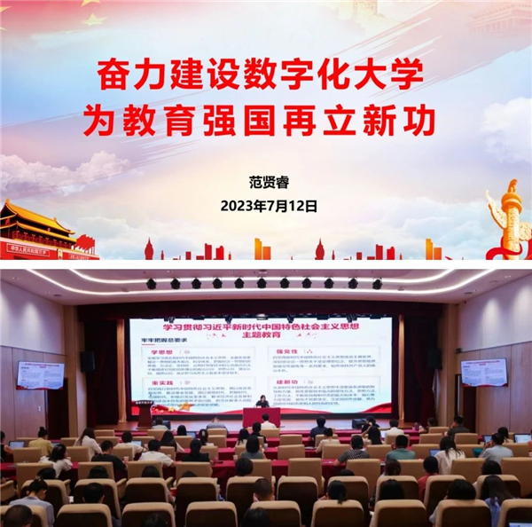 范贤睿要求,全体党员要学思践悟、实干笃行,扎实推进主题教育走深走实,把学习成效转化为推进工作的强大动力,坚定落实国家教育数字化战略,推动学校核心业务数字化转型、强化技术赋能和条件保障、完善制度环境,同心聚力谋发展,加快建成数字化大学,为全民终身学习的学习型社会、学习型大国建设作出新的贡献。