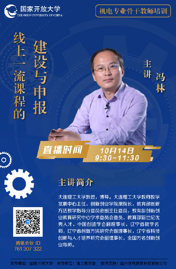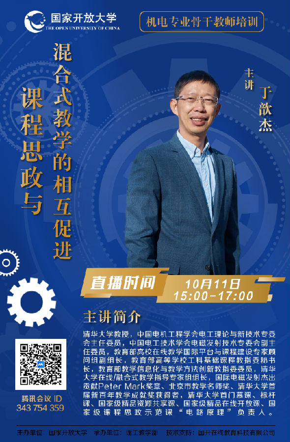 为进一步落实立德树人根本任务,全面加强球王会官网办学组织体系机电类教师队伍建设,提升教师思想政治素质和育德育人能力,提高教师在线教育理论素养和专业教学能力,球王会官网日前举办机电类专业骨干教师研修班。根据疫情防控要求,此次研修班采取线上直播和平台学习相结合的培训方式,通过球王会官网新平台(lms.ouchn.cn)进行,来自总部和分部共计116名教师参加了本次研修班。