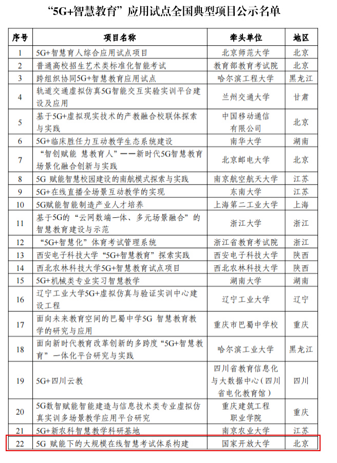 国开项目入选“5G+智慧教育”应用试点全国典型项目名录