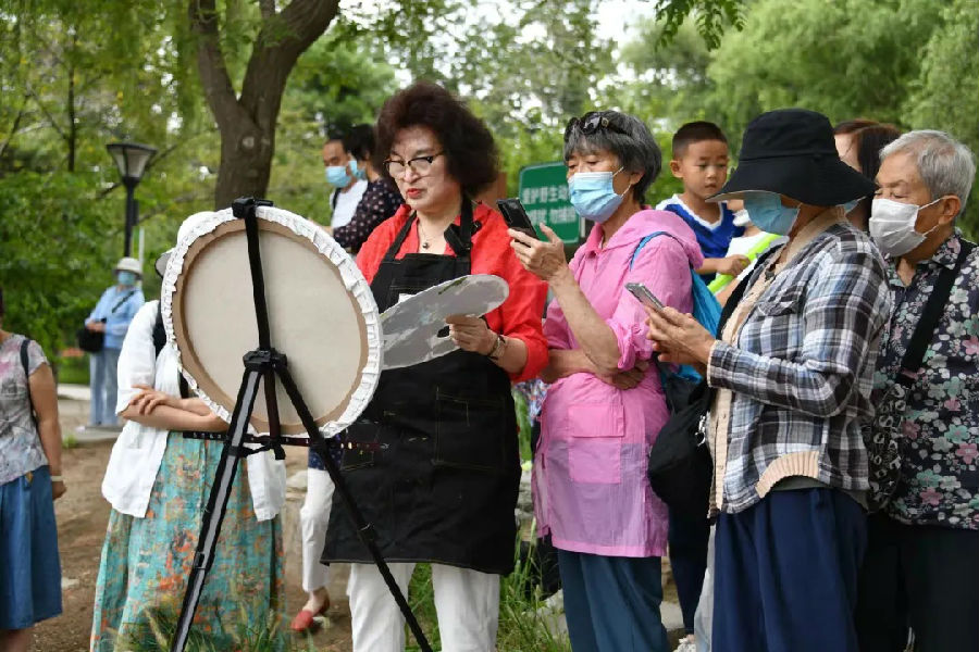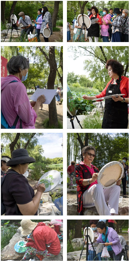 学员们开心极了!一切准备就绪之后大家便开始了自己的创作,寥寥数笔,勾勒出玉渊潭晚夏初秋的景色。学员们创作的精彩瞬间,我们也用镜头记录下来,让我们一起来看看吧!