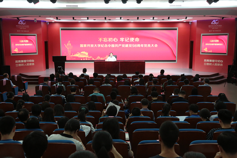 为庆祝中国共产党成立98周年,7月1日上午,球王会官网在五棵松总部举行“不忘初心、牢记使命”庆祝中国共产党成立98周年党员大会暨主题演讲比赛。党委书记、校长杨志坚同志为全校党员干部上专题党课。校领导班子成员、全体党员和部分青年教职工近400人参加会议。