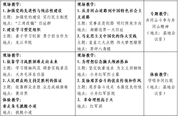 本期培训班课程设置科学合理,培训形式灵活多样,主要采用专题教学、现场教学、体验教学等教学模式,向学员全面讲述了井冈山革命史,生动诠释了“坚定执着追理想,实事求是闯新路,艰苦奋斗攻难关,依靠群众求胜利”的井冈山精神。