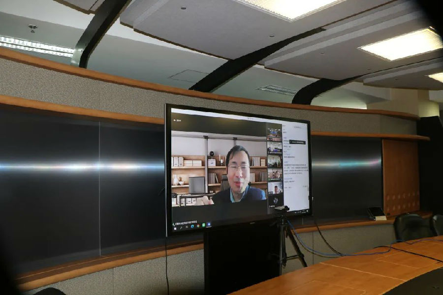 总部管理学分委员会部分委员、青年博士代表、秘书等现场参会,经济管理教学部全体教师、开放大学体系管理学科相关教师、科研人员、教学管理人员、社区教育工作者等共计300人在线积极参与。活动由管理学分委员会副主任委员杜若主持。(摄影:周明坤)