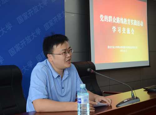 会上,亓彦伟、匡贵秋、陈鹃、张遐、刘臣分别代表校办新闻办联合党支部、教务处党支部、学习中心党支部、教育学院党支部、出版社党支部,交流了本支部学习交流的情况及体会。
