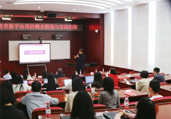 韩锡斌在讲座中着重强调三点内容:一是教育数字治理是“教育管理”从传统形态向现代形态不断变迁的过程,教育管理主体、教育管理运行模式、教育管理过程、教育管理实施方式都将发生变化;二是教育数字治理的首要任务是梳理业务逻辑及每个环节的详细内容,再用数据贯穿所有业务,进而达到服务师生的目的;三是要深刻领悟并践行教育部党组书记、部长怀进鹏提出的“应用为王 服务至上 示范引领 安全运行”十六字方针,积极开展教育数字化研究、建设和应用工作。