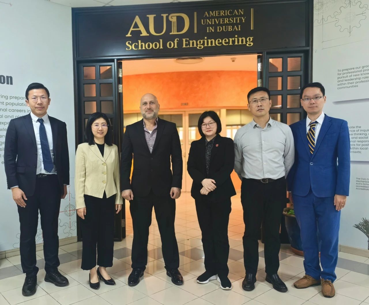 代表团赴迪拜大学工程学院、迪拜美国大学工程学院进行访问,并与华为迪拜业务负责人进行洽谈。双方围绕人工智能教育应用改革、工程教育人才培养、课程合作等内容开展了积极交流和研讨。双方均表示,将进一步加强互联,推动在数字教育、海外中心等方面的合作。