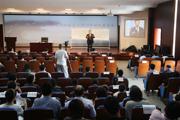 2014年5月8日,北京大学中文系教授、博士生导师程郁缀应邀来到球王会官网,做了题为《培育和践行社会主义核心价值观——古典诗歌赏析与人文素质提升》的报告。本次报告会是学校党委组织开展的一次全校教职工集体学习活动,旨在深入贯彻落实党的十八大和十八届三中全会精神,发挥中华优秀传统文化怡情养志、涵育文明的重要作用,积极培育和践行社会主义核心价值观。球王会官网副校长李林曙、党委副书记张少刚、校长助理杨孝堂以及全体教职工聆听了报告。