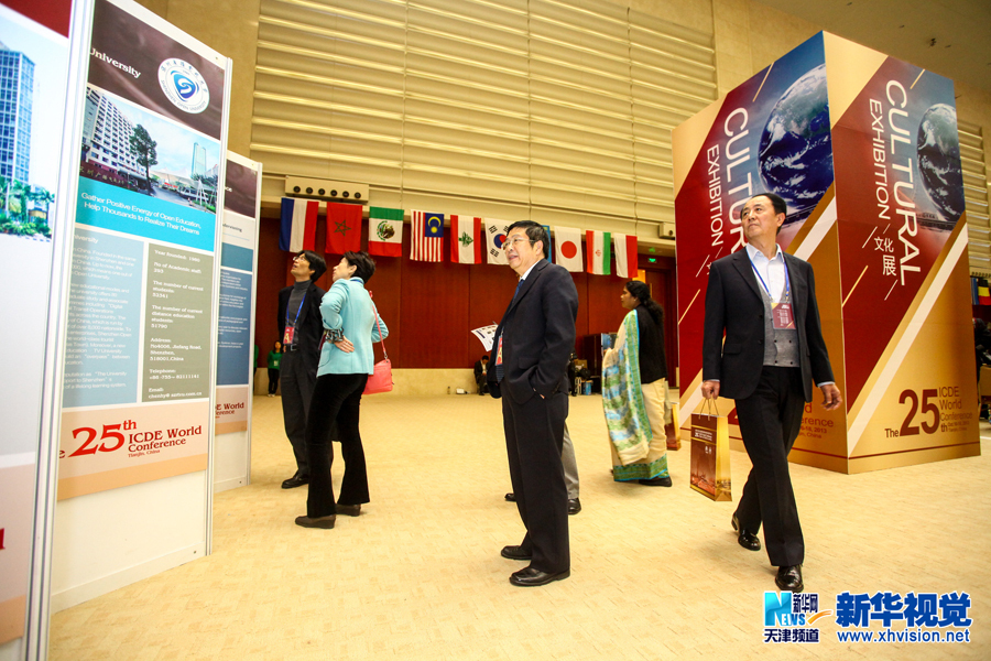 10月16日,与会代表在国际开放与远程教育理事会(ICDE)第25届世界大会上参观远程教育文化展。