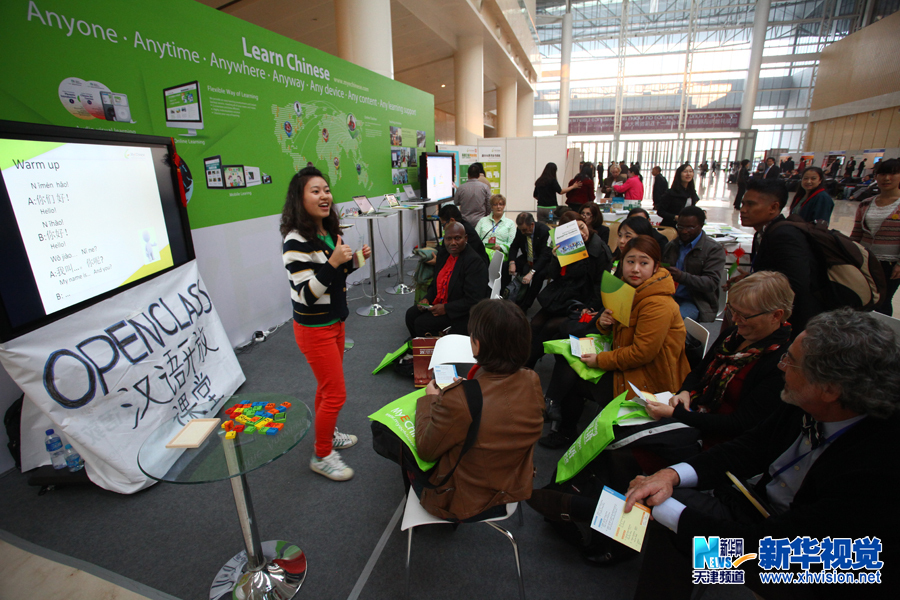 10月16日,与会代表在体验汉语开放课堂。