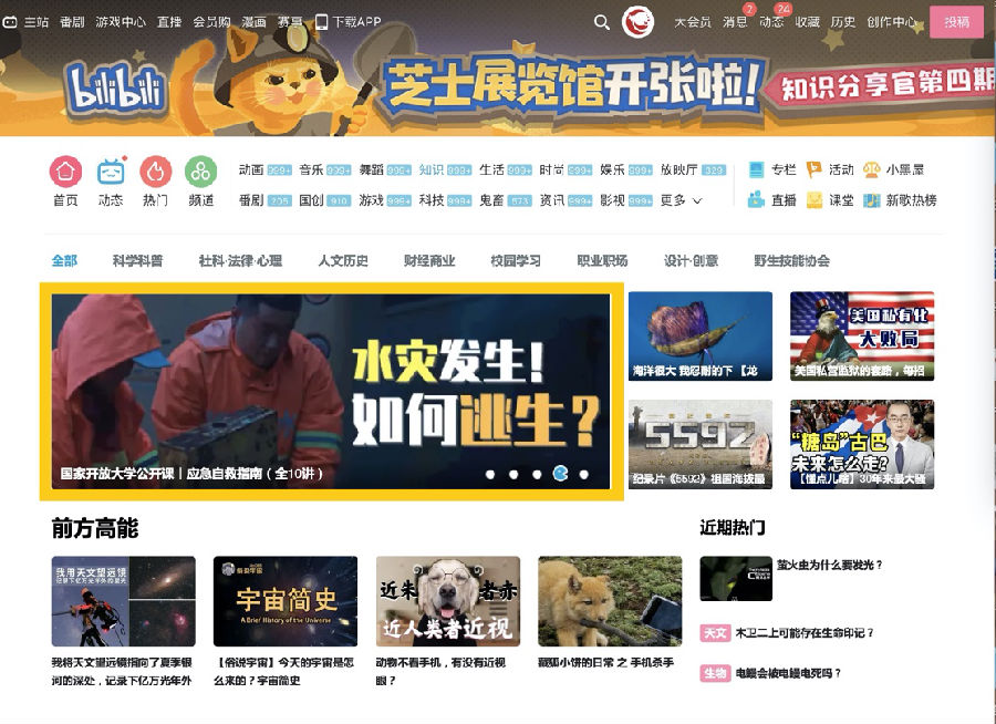 B站是国内年轻用户聚集的文化社区,目前拥有月活用户1.72亿+,用户日均使用时长87分钟。近年来在中视频赛道,B站反超“优爱腾”等头部视频网站,业务表现强劲,据QuestMobile统计,B站是中国24岁以下年轻人最偏爱的网站,并常年占据百度00后搜索热点榜单前列。球王会官网较早得注意到B站极高的用户粘性和用户强烈的求知欲望,以及知识类内容在B站上广受欢迎等现象,于2019年9月开设B站官方账号,并由学习资源部负责日常运维管理工作,是首家入驻B站的开放大学。
