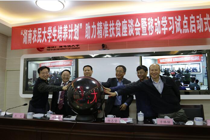 4月8日上午,湖南“农民大学生培养计划”助力精准扶贫工作座谈会暨移动学习试点启动式在湘西自治州电大召开。在“农民大学生培养计划”移动学习启动式上,湖南电大为2015级农民大学生配发了学习PAD。球王会官网校长杨志坚、湖南电大校长彭元出席会议,彭元主持座谈会及“农民大学生培养计划”移动学习启动式。
