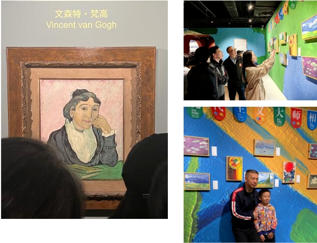 “世界名画训练营”首次将美育课堂开放并延伸到公共文化场所,还与遇见博物馆联合开展“边看展边学画”活动,本次展出的学生作品就是该活动的成果。主题活动展出了莫奈、梵高和现代主义大师的真迹,以及42件学员作品。完成学生作品的学员最小的年仅3岁,最大的60多岁,展出的均是他们的第一件油画作品。丰富多彩的艺术作品令与会人员纷纷感叹美育的无限可能,体现了“在线油画公社”作为新时代终身学习品牌的重要价值。