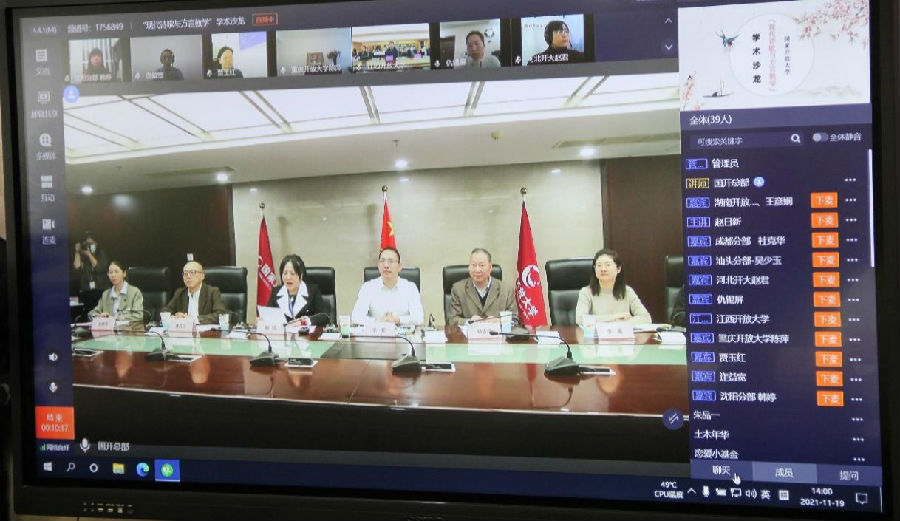 球王会官网党委委员、副校长、第三届学术委员会主任李松出席沙龙并致辞。江西开放大学党委副书记、校长、文史哲艺分委员会主任黄平槐在江西参会并作论坛主旨介绍。现场参与活动的还有球王会官网第三届学术委员会副主任委员王迎、韩仪,秘书长李薇,人文教学部部长、委员唐应山,天津开放大学教务副处长王同军、山东开放大学教师黄慧泽和人文教学部的部分教师(在北京),江西开放大学人文社科、教学教务等各部门教授、副教授共计30余人和部分相关专业学生(在江西)。文史哲艺分委员会部分委员、办学体系文史哲艺相关专业教师以及体系内外2000多人通过线上方式参加了本次活动。沙龙由韩仪主持,方言配乐诵读由秘书肖婉莹博士与夏朝阳博士主持。