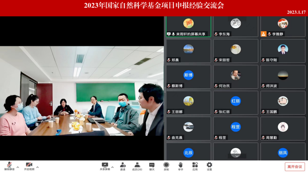 来雨轩以个人申报项目的经历为例,介绍了国家自然科学基金的基本情况,细致、全面、有针对性地分享了国家自然科学基金申报书的写作方法与技巧,详细阐释了每个模块的撰写方法,并就青年教师如何提高科研水平和能力提出了意见建议。与会同志就联合科研、前期研究基础、交叉学科方向等问题进行了充分交流。