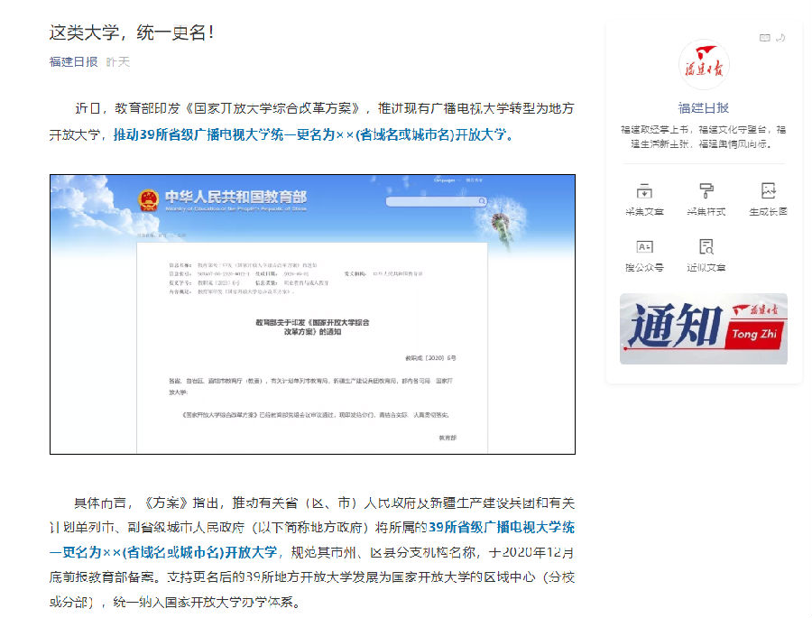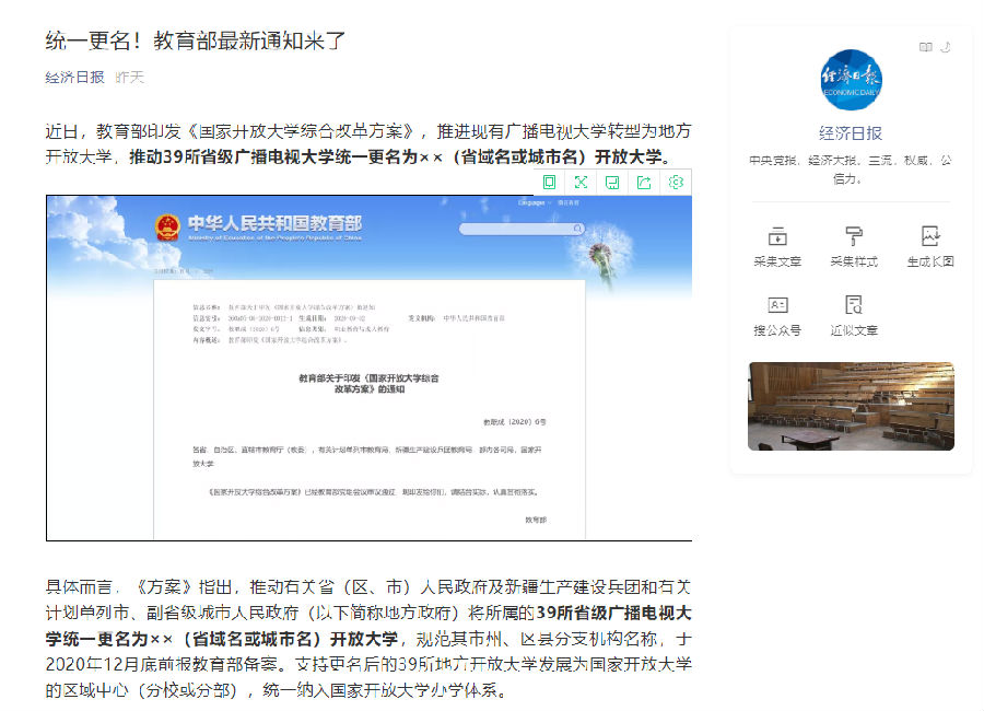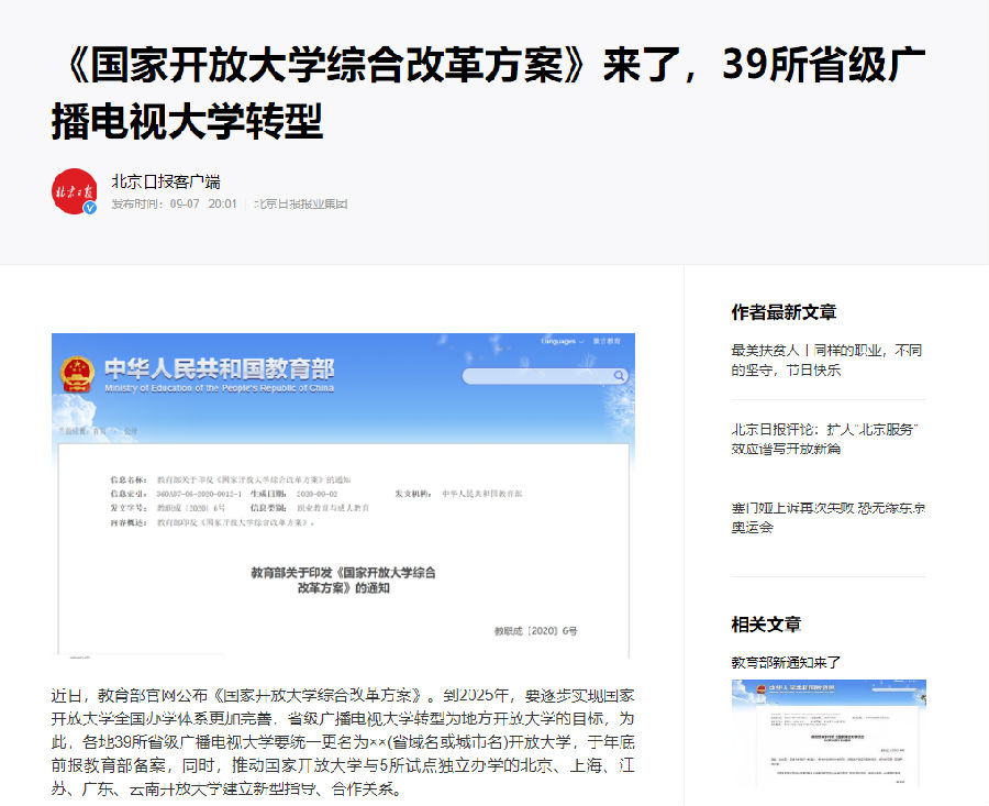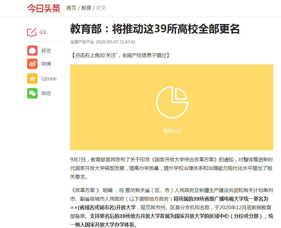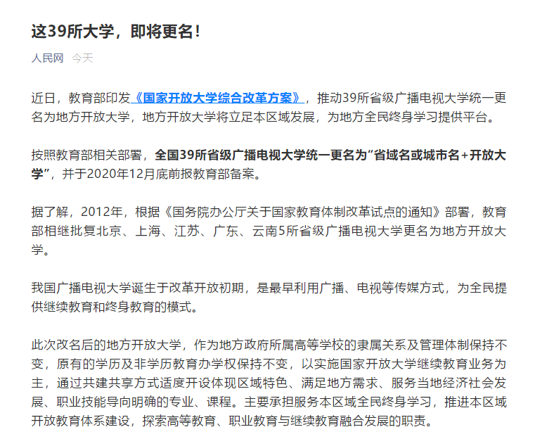 【北京日报】《球王会官网综合改革方案》来了,39所省级广播电视大学转型