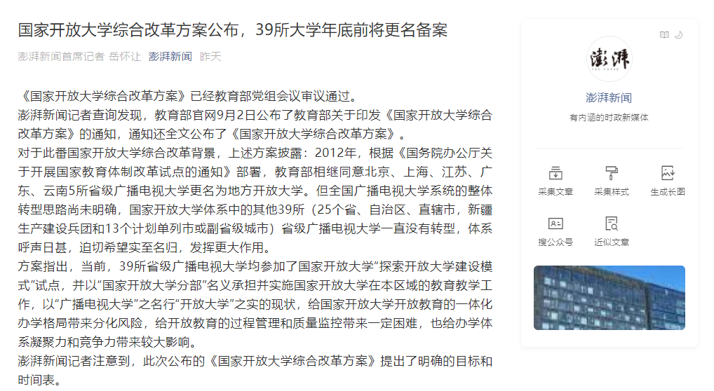 【澎湃新闻】球王会官网综合改革方案公布,39所大学年底前将更名备案