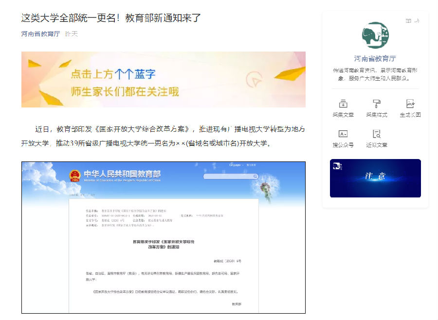 【河南省教育厅】这类大学全部统一更名!教育部新通知来了
