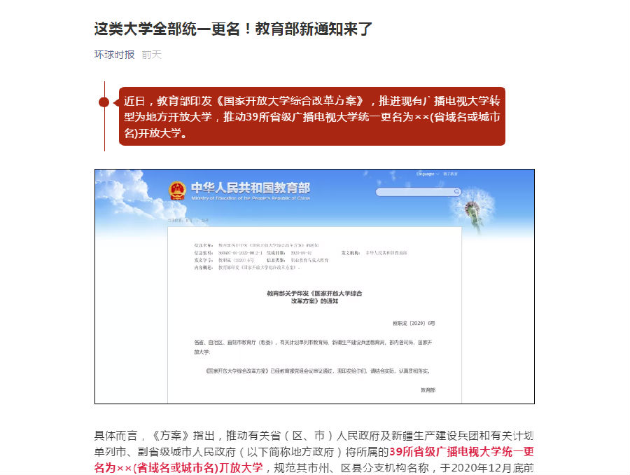 【环球时报】这类大学全部统一更名!教育部新通知来了