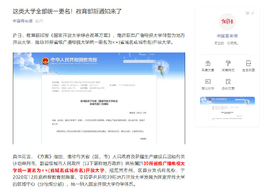 【中国青年报】这类大学全部统一更名!教育部新通知来了