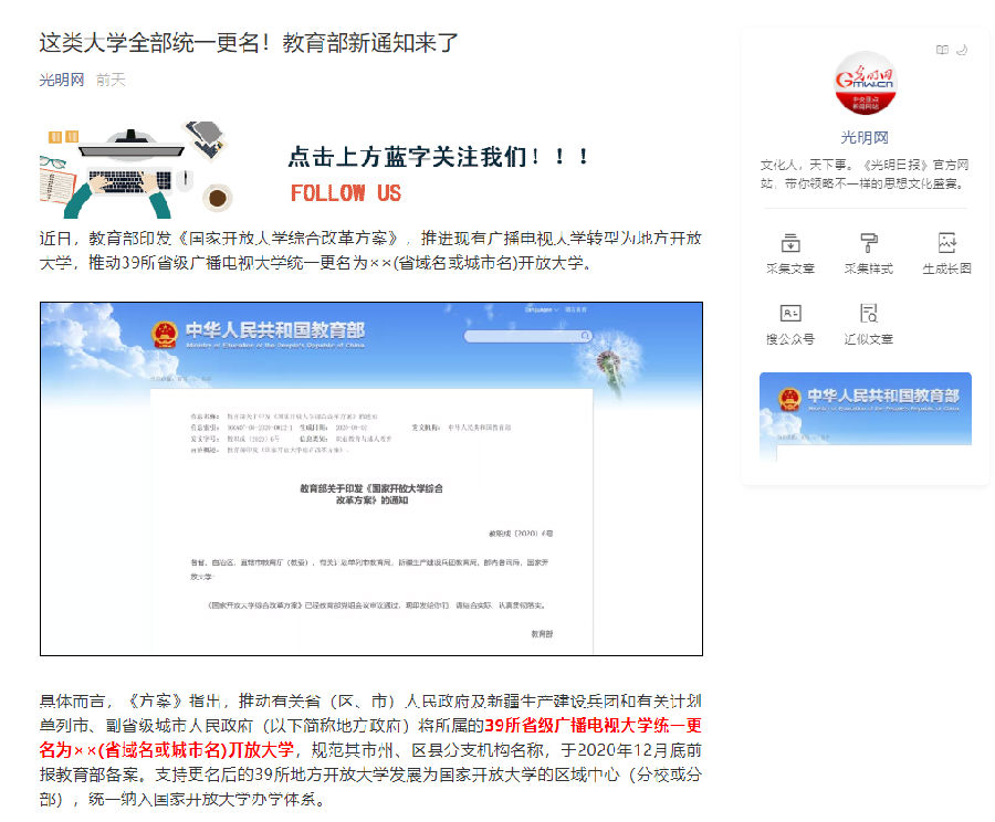 【光明网】这类大学全部统一更名!教育部新通知来了