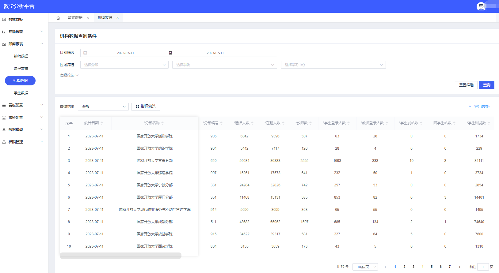 图:教学分析平台即席报表界面截图