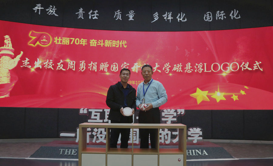 杰出校友周勇捐赠球王会官网磁悬浮LOGO