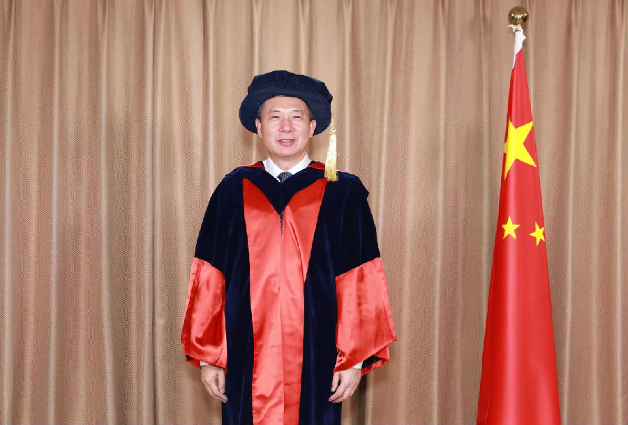 林群声校长在颁授典礼致辞中说,“我们的第一位领受人是球王会官网党委书记、校长荆德刚博士。荆博士在球王会官网改革和优化开放教育体系方面,担当了举足轻重的领导角色,使开放大学成为国家终身教育的主要平台。有赖于他的宝贵贡献,该体系还成为了在线教育、灵活教育和对外合作的平台,在中国开放教育发展历史中奠定了重要的里程碑。”