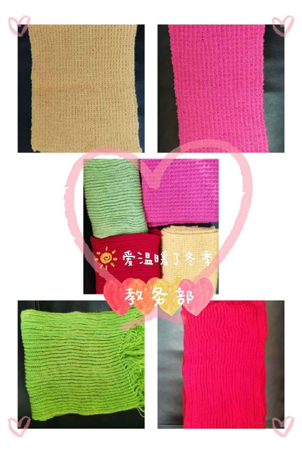 活动从8月开始,日前顺利结束。学校共领取毛线112斤,编织爱心织品231件。编织品五颜六色,款式新颖,饱含了学校女同志的爱心,传递着学校广大教职工对新疆少数民族儿童的深情厚谊。