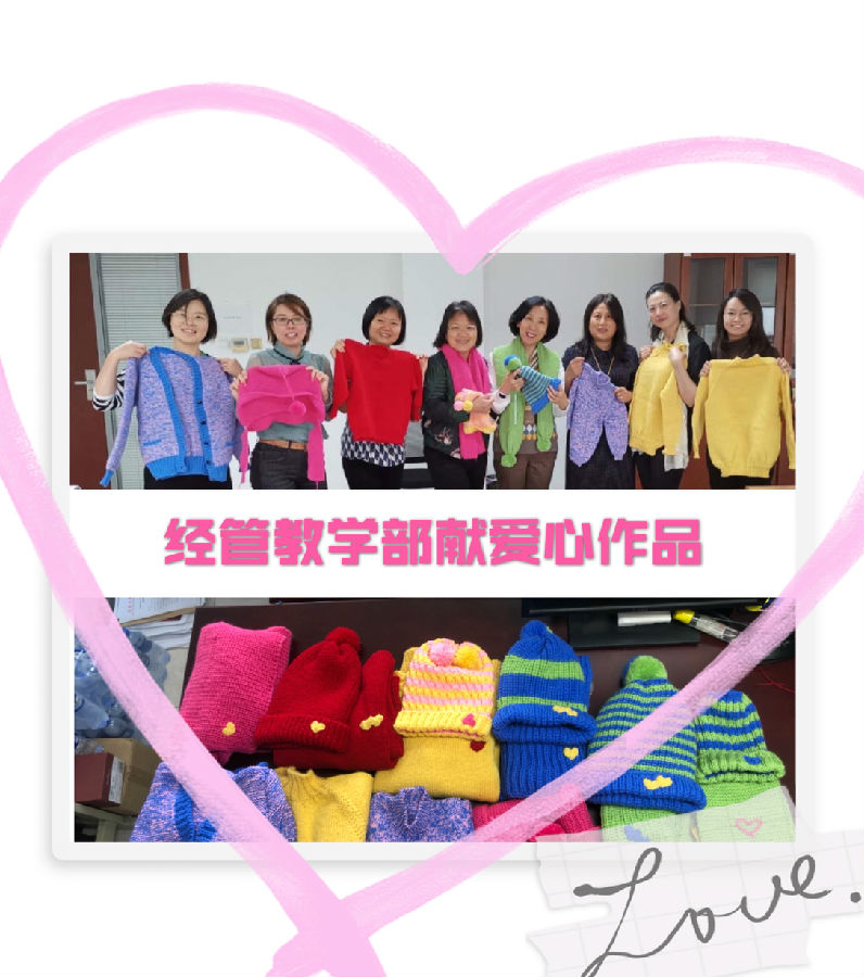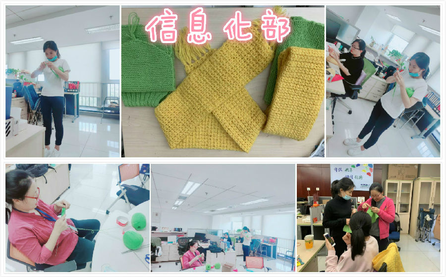 学校共有 116 名女同志参与编织活动,其中包括50多名离退休女干部。另外,还有10多名教职工家属参与了编织。编织过程中,温暖、热烈的活动气氛让广大女职工深受感染,最初没有领取毛线的女职工纷纷自己购买毛线,参与到编织活动中。