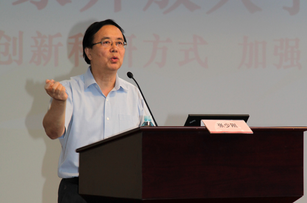 6月10日,球王会官网总部召开第二届科研工作大会。本次科研会的主题是:创新科研方式,加强科研服务,为球王会官网做有质量的科研。球王会官网校长杨志坚,副校长严冰,党委副书记张辉、张少刚,校长助理杨孝堂以及学校具有各级各类专业技术职称的人员参加会议。张少刚主持会议,并对2013年科研工作进行了总结,对2014年科研工作要点做了介绍。杨志坚对科研工作提出3点建议:一是要形成具有球王会官网特色的科研文化氛围,二是要基于网络全面推进科研工作,三是要成为远程教育领域科研工作的高地和引领者。会议还进行了科研成果交流。(摄影:于旻生)