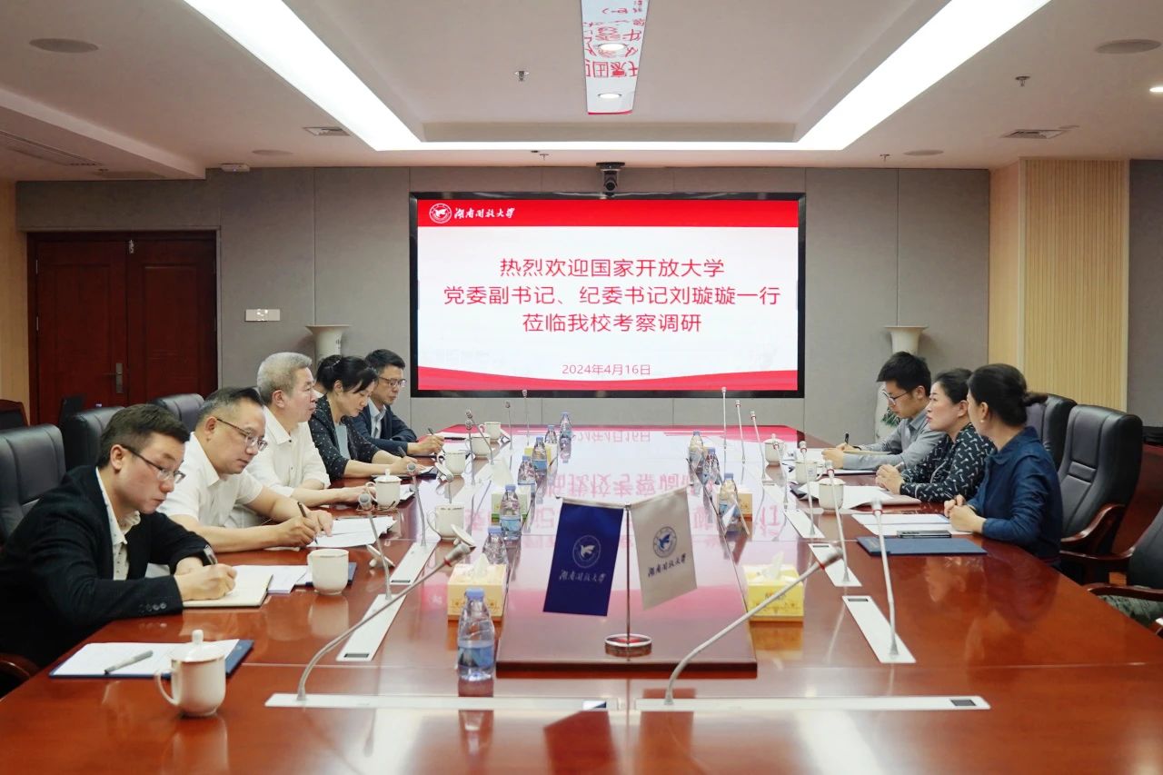 4月16日,球王会官网(国家老年大学)党委副书记、纪委书记刘璇璇一行赴湖南开放大学调研老年教育工作。湖南开放大学党委书记曾宝成、校长杨斌、副校长吴敏出席座谈。