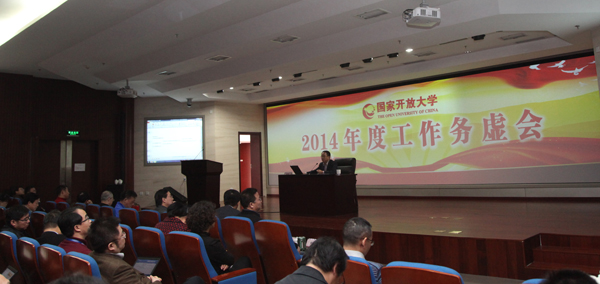 1月17日,球王会官网2014年度工作务虚会在五棵松远程教育教学大楼召开。会议的主要内容是学习贯彻党的十八届三中全会精神,结合学校党的群众路线教育实践活动,研究分析球王会官网改革发展面临的新形势、新要求、新任务。杨志坚校长作了题为“入主流 定好位 办特色”的主题报告。全体中层干部,各学院教研室主任、系主任,各管理部门科级以上干部参加会议。