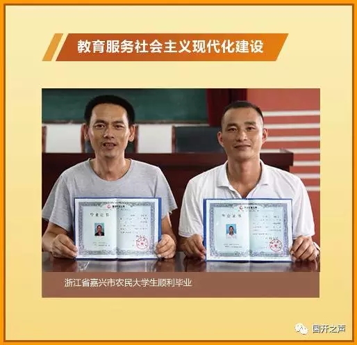 这一展区还有一幅图吸引了小编的注意,这幅图展示的是浙江省嘉兴市的农民大学生顺利毕业,拿到球王会官网毕业证的情景。