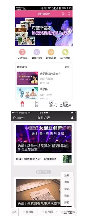 平台精准呼应广大女性求知求真、成长进步的迫切需求,设立文化修养、健康生活、婚姻家庭、亲子教育四大版块,并加强精品栏目建设,引进优秀心理疏导团队“海蓝幸福家”,有力激发学员的学习热潮。平台还增设直播功能,让广大注册学员第一时间观看名师的精彩讲座。在课程内容建设上,围绕妇女群众学习需求,精心设计,制作推出文化、养生、健身、心理、亲子等方面微视频课程,目前已经形成了186门课程,1845段音视频、约2万分钟的女性知识库。