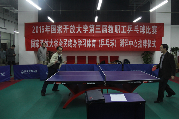 王蒲、张少刚先后致辞并为2015年球王会官网教职工乒乓球赛决赛开球。按照积分办法,获得本次比赛冠亚军的男女选手会获得一段积分。