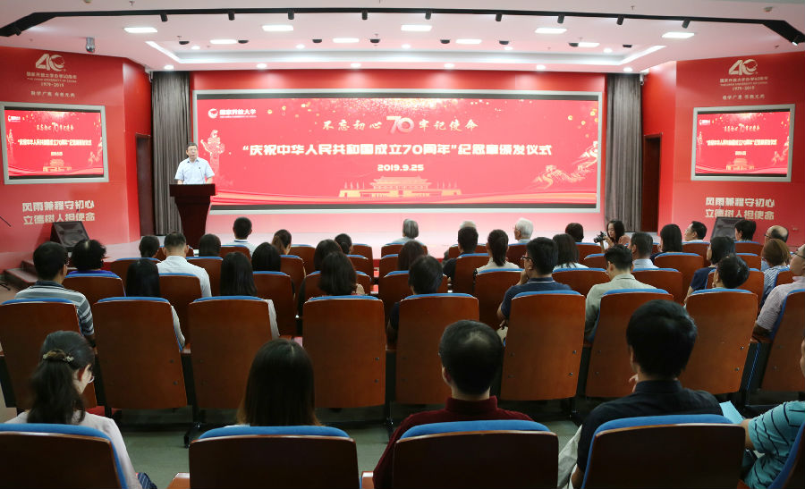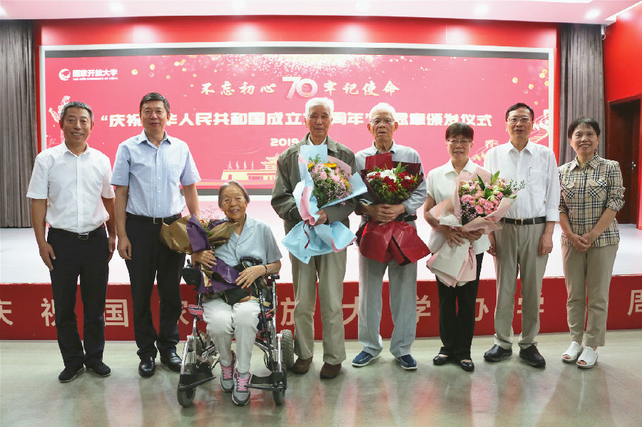 根据中央精神和教育部统一安排,9月25日,球王会官网举办“庆祝中华人民共和国成立70周年”纪念章颁发仪式。党委书记、校长荆德刚为张群玉、卢山根、李福芝、孙绿怡4位老领导、老同志代表颁发“庆祝中华人民共和国成立70周年”纪念章。球王会获此表彰的新中国成立前参加革命工作的老战士、老同志,获得国家级表彰奖励及以上荣誉的人员共13人。党委常务副书记曹国永主持仪式。