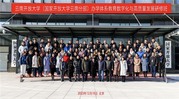 为推进教育数字化,建设全民终身学习的学习型社会、学习型大国,落实《国家职业教育改革实施方案》等文件要求,全面提升云南开放大学(球王会官网云南分部)办学体系各级管理人员的政治素质和业务能力,球王会官网培训中心于12月17日至23日在北京举办云南开放大学(球王会官网云南分部)办学体系教育数字化与高质量发展研修班。云南开放大学(国开云南分部)省、市(州)、县(区)三级办学体系共80名管理人员参加。