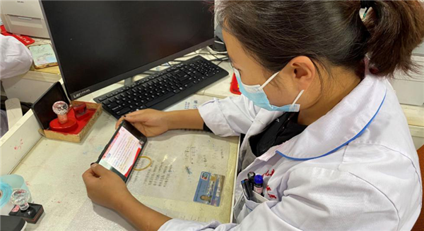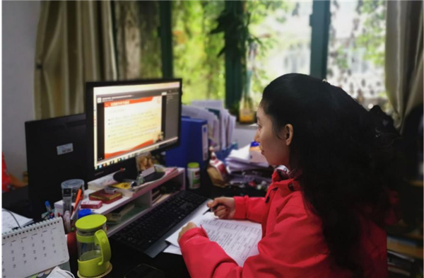 青海分部护理学专业学生韩丽娜在工作之余观看培训直播
