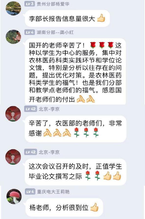 浙江分部李苹芳老师和浙江分部台州电大徐海红老师分享了浙江分部园艺本科专业综合实践环节的实施情况。贵州分部杨爱华和贵州分部直属学院许羽老师介绍了贵州分部护理学本科专业综合实践环节的实施情况。