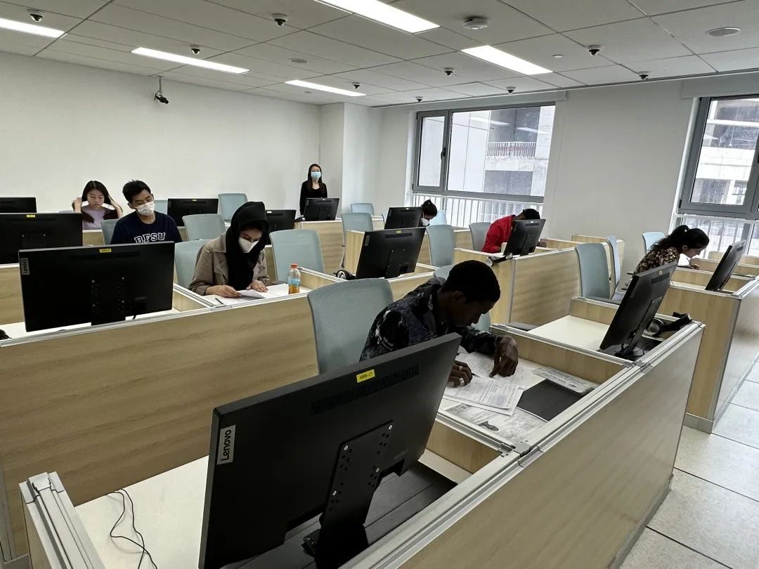 为保证考试顺利进行,相关工作人员提前调试考试设备并做好导引工作。考试当天,考生有序入场,确认个人信息后进行考试。考试结束后,监考教师填写考场情况,并及时完成其他相关考后整理工作。