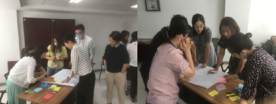 “分享环节”由各小组将讨论结果进行汇报分享。各小组分别就各组讨论的结果进行分享,并对所有小组成果进行归纳整理,寻找共同点。在此环节中,各小组都积极贡献智慧,聚焦学部发展的真问题,如教师专业性发挥不充分、教师的队伍结构不合理、青年教师发展的支持和内生动力不足等。