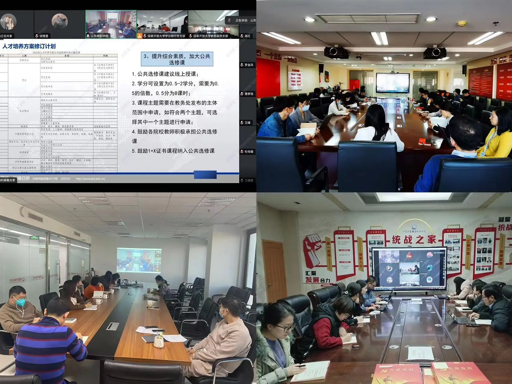 党的二十大报告指出:“统筹职业教育、高等教育、继续教育协同创新”。新时代新征程,教育强国建设对三教协同创新提出了更高要求。为推进三教协同创新,进一步搭建三教交流沟通机制,近日,球王会官网教务部党支部、学分银行党支部联合山东商业职业技术学院机关党委第二党支部开展“加快教育强国建设 深化三教协同创新之完全学分制改革探索”联学联建主题活动。球王会官网学分银行党支部书记王然主持活动。活动通过线上会议和线下集中学习相结合的方式开展。