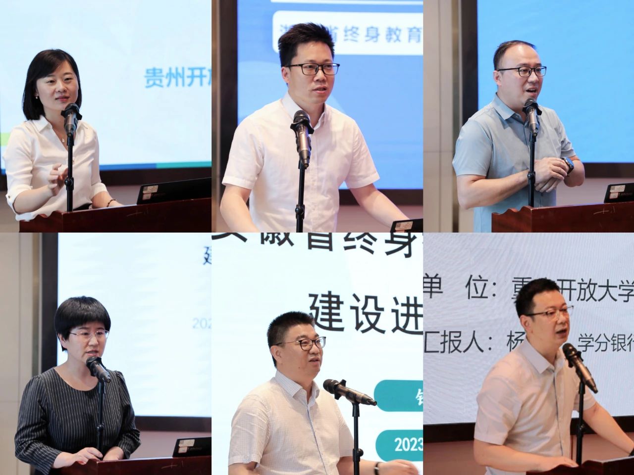 贵州开放大学副校长周勇、浙江开放大学副校长张吉先、黑龙江开放大学副校长耿玉龙、安徽开放大学副校长孙枝娟、重庆开放大学副校长刘昌雄、沈阳开放大学副校长汤晓伟、成都开放大学副校长曾垂刚、青海开放大学副校长刘建红等针对各地区学分银行发展现状,围绕学分银行已有成果、经验做法、问题建议等方面进行发言。