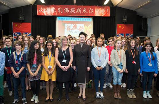 彭丽媛参观福提斯米尔中学( 图片来源于新华网)