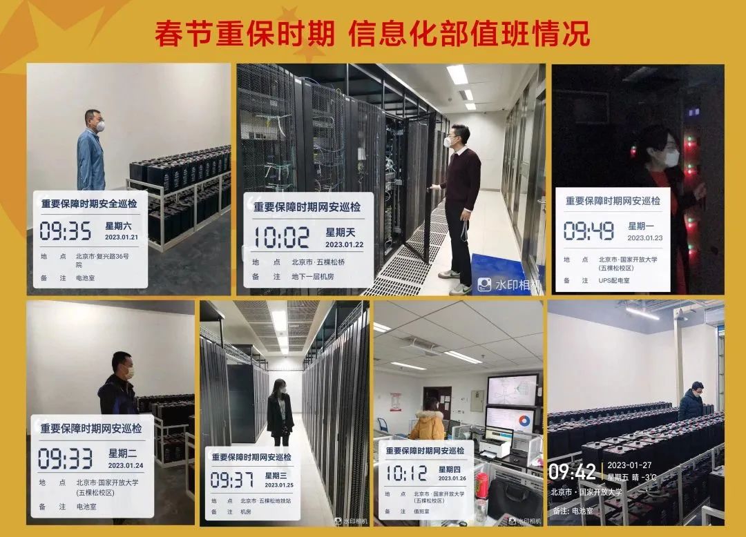 网络安全值守工作组以履职尽责、毫不懈怠的自觉,采用现场保障、远程值守等方式,日夜坚守不断线,落实安全责任。全校33个部门及5家校办企业的网络安全联络员55人协同开展值守与报平安工作,国开在线对公有云、私有云和五棵松机房实行7×24现场专人值守。下一步,工作小组将继续做好重要保障时期的网络安全值守工作,全力维护学校网络安全,全面营造安全稳定的数字化校园环境。